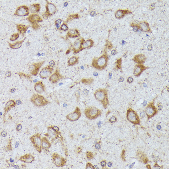 Immunohistochemistry of paraffin-embedded Rat brain using TBCB Polyclonal Antibody at dilution of 1:100 (40x lens).
