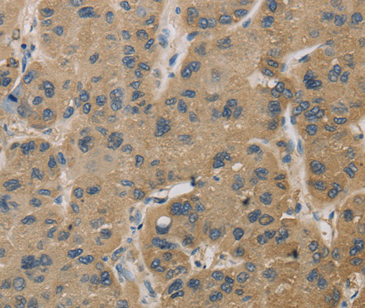 Immunohistochemistry of paraffin-embedded Human liver cancer tissue using TBXAS1 Polyclonal Antibody at dilution 1:30