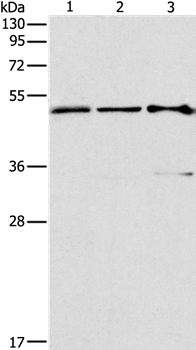- Applications SupplierIHC (1:50 - 1:200), WB (1:500 - 1:2000) The predicted MW is 31kDa/49kDa, while the observed MW by Western blot was 49kDa.