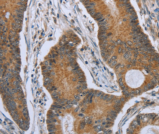Immunohistochemistry of paraffin-embedded Human colon cancer tissue using TNFRSF13C Polyclonal Antibody at dilution 1:40