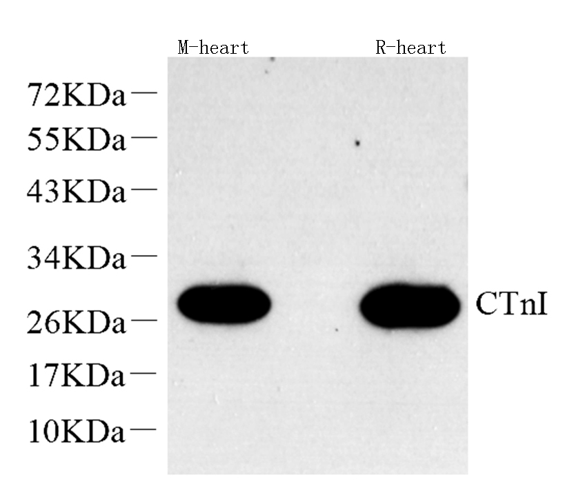 Western Blot analysis of various samples using TNNI3 Polyclonal Antibody at dilution of 1:600.