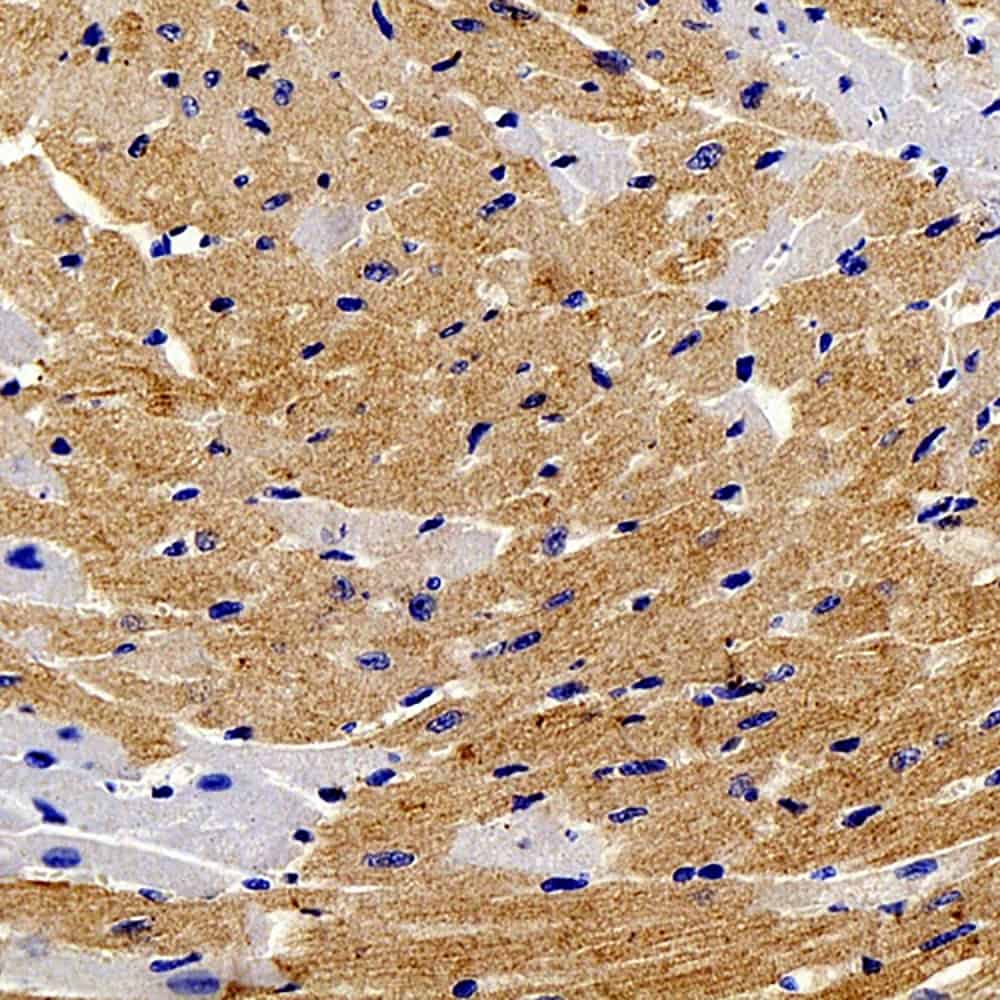 Immunohistochemistry analysis of paraffin-embedded mouse heart using TNNT2 Polyclonal Antibody at dilution of 1:200.