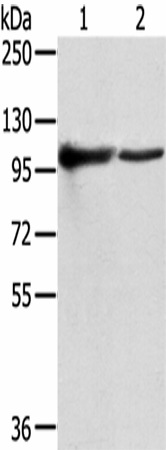 Western Blot analysis of K562 and A431 cells using TPX2 Polyclonal Antibody at dilution of 1/800