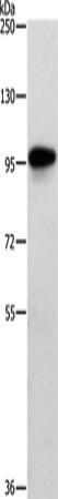 Western Blot analysis of Human brain malignant glioma tissue using TRAF3IP1 Polyclonal Antibody at dilution of 1:500