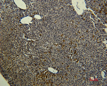 Immunohistochemistry of paraffin-embedded Rat liver tissue using Transferrin Monoclonal Antibody at dilution of 1:50.