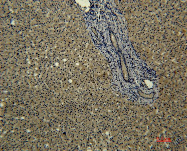 Immunohistochemistry of paraffin-embedded Human liver tissue using Transferrin Monoclonal Antibody at dilution of 1:50.