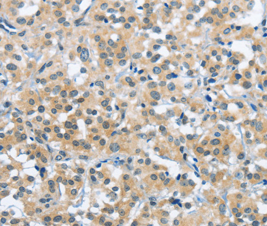 Immunohistochemistry of paraffin-embedded Human thyroid cancer tissue using TRDMT1 Polyclonal Antibody at dilution 1:40