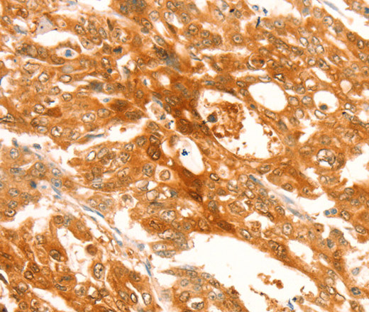 Immunohistochemistry of paraffin-embedded Human gasrtic cancer tissue using TRPM7 Polyclonal Antibody at dilution 1:30