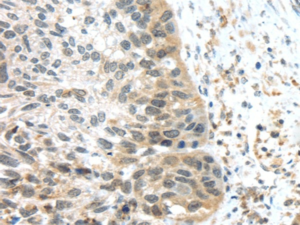 Immunohistochemistry of paraffin-embedded Human esophagus cancer tissue using TSPY1/3 Polyclonal Antibody at dilution 1:45
