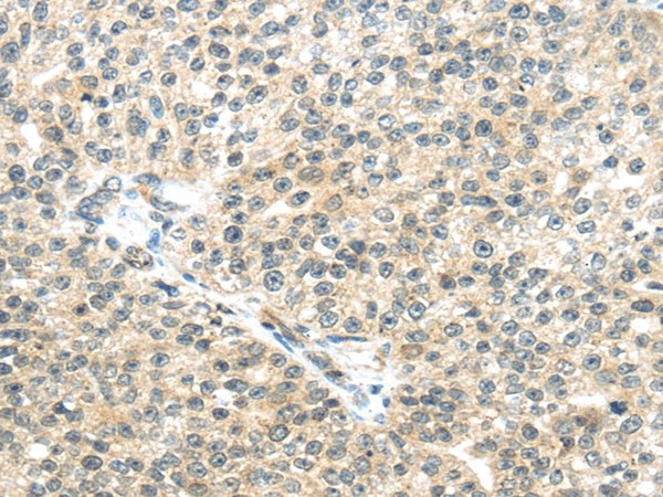 Immunohistochemistry of paraffin-embedded Human breast cancer tissue using TTBK2 Polyclonal Antibody at dilution 1:45