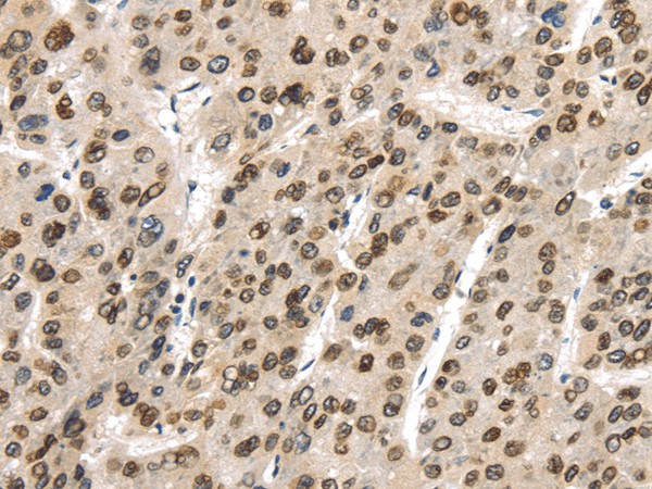 Immunohistochemistry of paraffin-embedded Human liver cancer using TUSC5 Polyclonal Antibody at dilution of 1/40