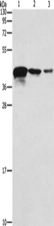 Western Blot analysis of Human endometrial carcinoma tissue, A172 and U937 cell using TWF2 Polyclonal Antibody at dilution of 1:800