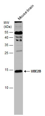 Mouse tissue extract (50 μg) was separated by 15% SDS-PAGE, and the membrane was blotted with UBE2B antibody (GTX114867) diluted at 1:500. The signal was developed with Trident ECL plus-Enhanced.
