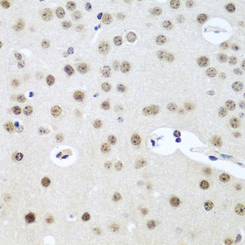Immunohistochemistry of paraffin-embedded Mouse brain using UTP14A Polyclonal Antibody at dilution of 1:100 (40x lens).