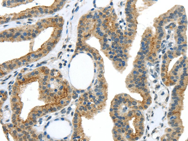 Immunohistochemistry of paraffin-embedded Human thyroid cancer using VAMP2 Polyclonal Antibody at dilution of 1/40