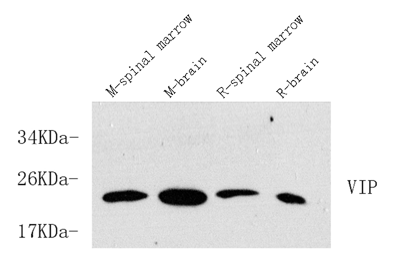 Western Blot analysis of various samples using VIP Polyclonal Antibody at dilution of 1:600.