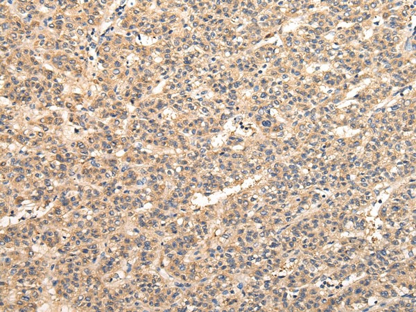 Immunohistochemistry of paraffin-embedded Human liver cancer tissue using VPS33B Polyclonal Antibody at dilution 1:40