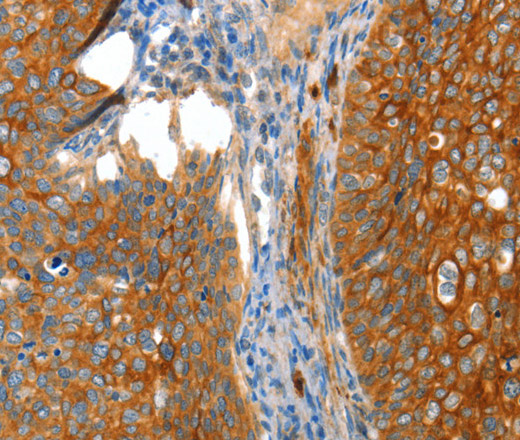 Immunohistochemistry of paraffin-embedded Human cervical cancer tissue using VWA5A Polyclonal Antibody at dilution 1:80