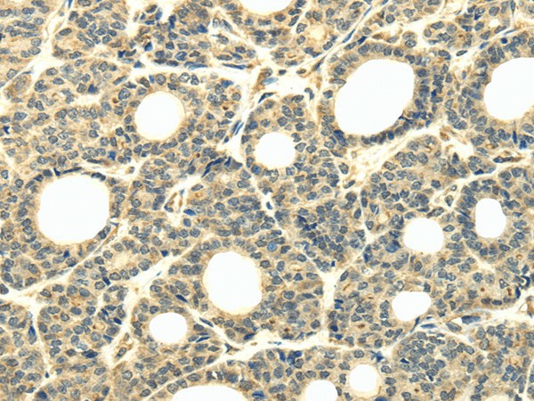 Immunohistochemistry of paraffin-embedded Human thyroid cancer tissue using WDR45B Polyclonal Antibody at dilution 1:40