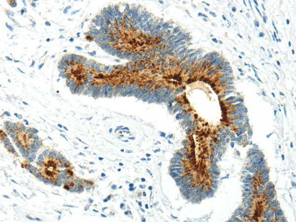 Immunohistochemistry of paraffin-embedded Human colorectal cancer using WWOX Polyclonal Antibody at dilution of 1/20